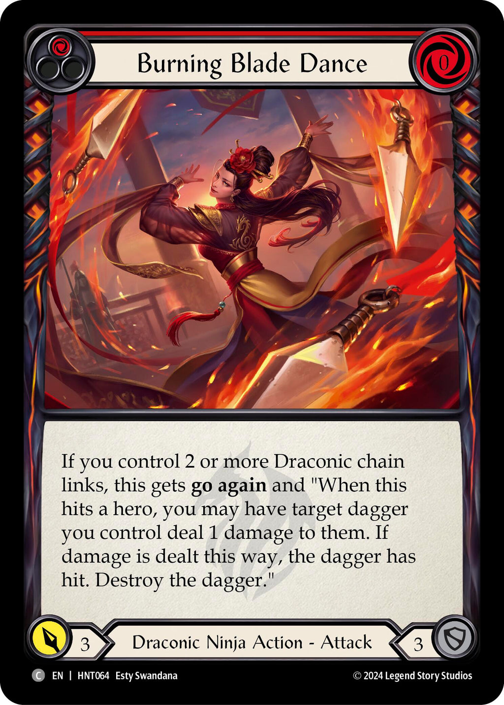 If you control 2 or more Draconic chain links, this gets go again and "When this hits a hero, you may have target dagger you control deal 1 damage to them. If damage is dealt this way, the dagger has hit. Destroy the dagger."