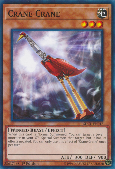 When this card is Normal Summoned: You can target 1 Level 3 monster in your GY; Special Summon that target, but it has its effects negative. You can only use this effect of "Crane Crane" once per turn.