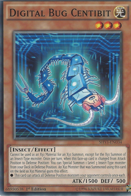 Cannot be used as an Xyz Material for an Xyz Summon, except for the Xyz Summon of an Insect-Type monster. Once per turn, when this face-up card is changed from Attack Position to Defense Position: You can Special Summon 1 Level 3 Insect-Type monster from your Deck in Defense Position. An Xyz Monster that was Summoned using this card on the field as Xyz Material gains this effect.