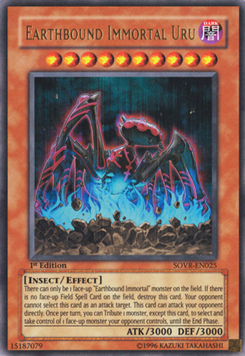 There can only be 1 face-up "Earthbound Immortal" monster on the field. If there is no face-up Field Spell Card on the field destroy this card. Your opponent cannot select this card as an attack target. This card can attack your opponent directly. Once per turn, you can Tribute 1 monster, except this card, to select and take control of 1 face-up monster your opponent controls, until the End Phase.