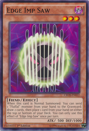 When this card is Normal Summoned: You can send 1 "Fluffal" monster from your hand to the Graveyard; draw 2 cards, then place 1 card from your hand on either the top or bottom of the Deck. You can only use this effect of "Edge Imp Saw" once per turn.