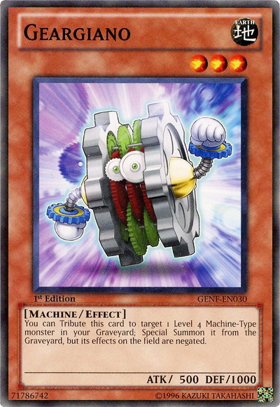 You can Tribute this card to target 1 Level 4 Machine-Type monster in your Graveyard, Special Summon it from the Graveyard, but its effects on the field are negative.