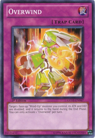 Target 1 face-up "Wind-Up" monster you control, it's ATK and DEF are doubled, and it returns to the hand during the End Phase. You can only activate 1 "Overwind" per turn.