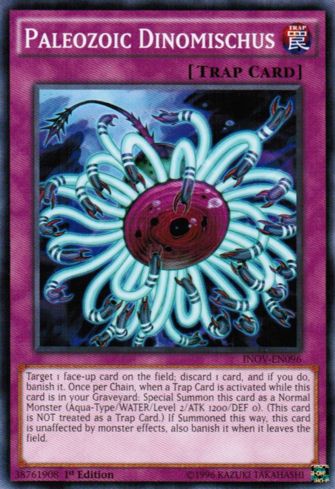 Target 1 face-up card on the field; discard 1 card, and if you do, banish it. Once per Chain, when a Trap Card is activated while this card is in your Graveyard: Special Summon this card as a Normal Monster (Aqua-Type/WATER/Level 2/ATK 1200/DEF 0). (This card is NOT treated as a Trap Card.) If Summoned this way, this card is unaffected by monster effects, also banish it when it leaves the field.