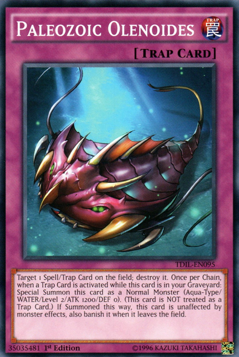 Target 1 Spell/Trap Card on the field; destroy it. Once per Chain, when a Trap Card is activated while this card is in your Graveyard: Special Summon this card as a Normal Monster (Aqua/WATER/Level 2/ATK 1200/DEF 0). (This card is NOT treated as a Trap Card.) If Summoned this way, this card is unaffected by monster effects, also banish it when leaves the field.