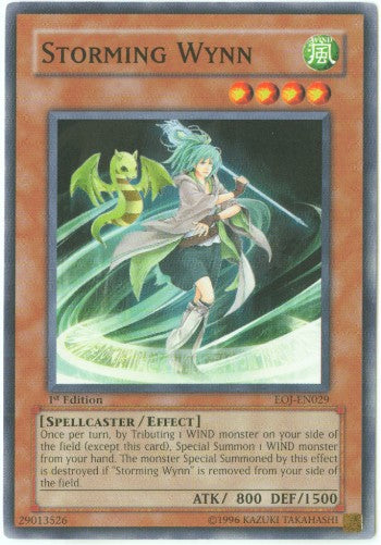 Once per turn, by Tributing 1 Wind monster on your side of the field (Except thsi card), Special Summon 1 WIND monster from you hand. The ,onster Special Summoned by this effect is destroyed if "Storming Wynn" is removed from your side of the field.