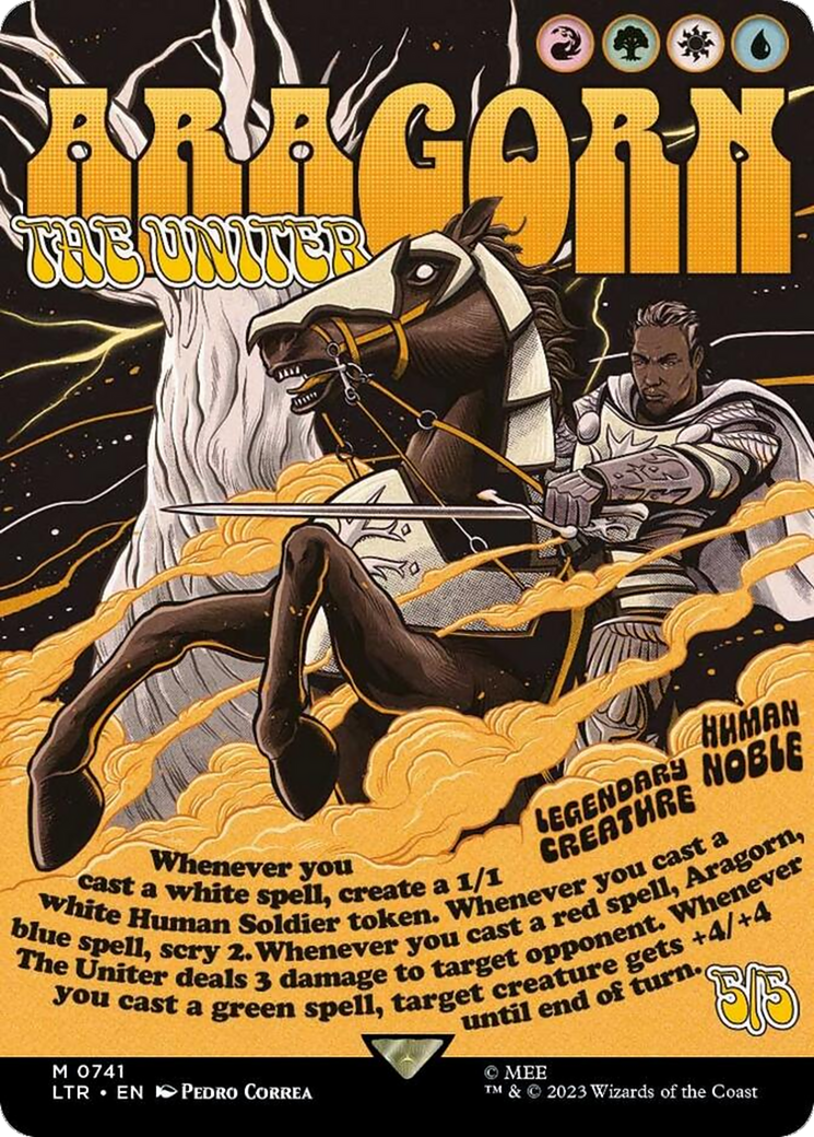 Whenever you cast a red spell, Aragorn, the Uniter deals 3 damage to target opponent.