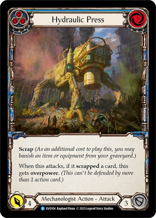When this attacks, if it Scrapped a card, this gets overpower. (This can't be defended by more than 1 action card.)