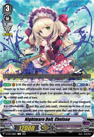 [AUTO](RC):At the end of the battle this unit attacked, if your vanguard is a, [COST][put this unit into soul], choose up to one of your opponent's rear-guards, and your opponent puts that unit into their soul.