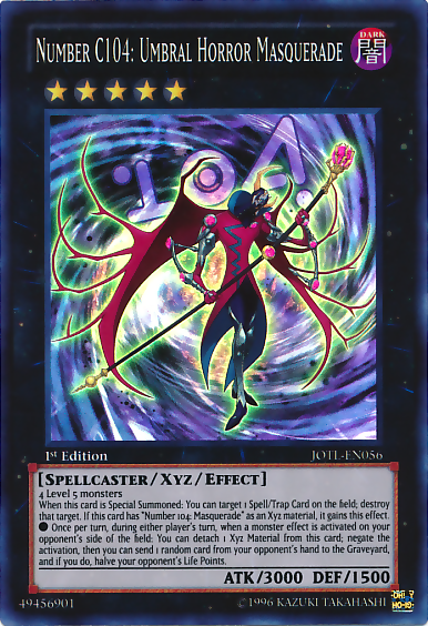 When this card is Special Summoned: You can target 1 Spell/Trap Card on the field; destroy that target. If this card has "Number 104: Masquerade" as an Xyz Material, it gains this effect.