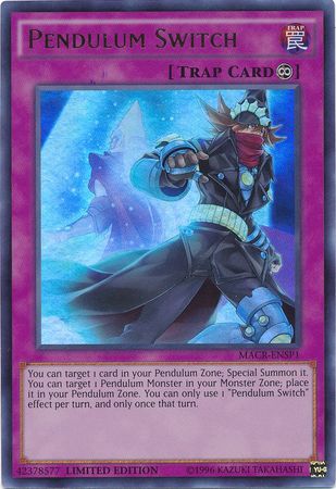 You can target 1 card in your Pendulum Zone; Special Summon it. You can target 1 Pendulum Monster in your Monster Zone; place it in your Pendulum Zone. You can only use 1 "Pendulum Switch" effect per turn, and only once that turn.