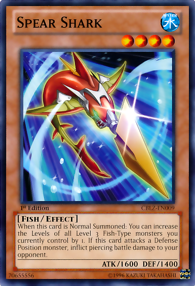 When this card is Normal Summoned: You can increase the Level of all face-up Level 3 Fish-Type monsters you currently control by 1. If this card attacks a Defense Position monster, inflict piercing Battle Damage to your opponent.