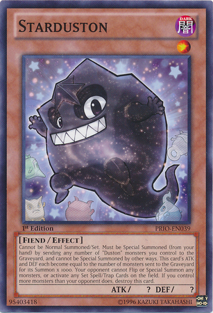 Cannot be Normal Summoned/Set. Must be Special Summoned (from your hand) by sending any number of "Duston" monsters you control to the Graveyard, and cannot be Special Summoned by other ways. This card's ATK and DEF each become equal to the number of monsters sent to the Graveyard for its Summon x 1000. Your opponent cannot Flip or Special Summon any monsters, or activate any Set Spell/Trap Cards on the field. If you control more monsters than your opponent does, destroy this card.