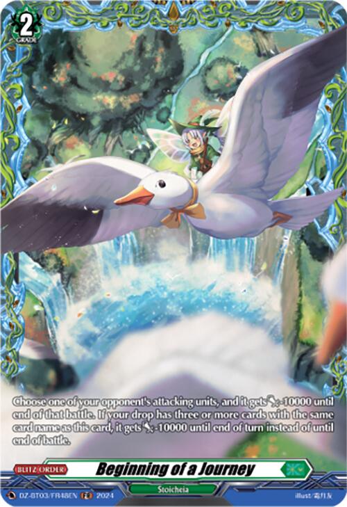 Choose one of your opponent's attacking units, and it gets [Power] -10000 until end of that battle. If your drop has three or more cards with the same card name as this card, it gets [Power] -10000 until end of turn instead of until end of battle.
