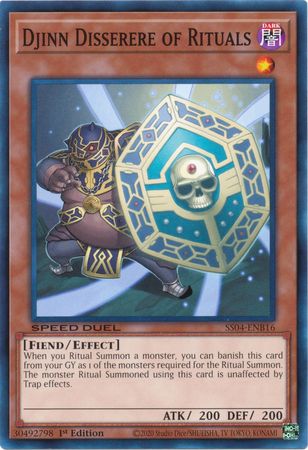 When you Ritual Summon a monster, you can banish this card from your GY as 1 of the monsters required for the Ritual Summon. The monster Ritual Summoned using this card is unaffected by Trap effects.