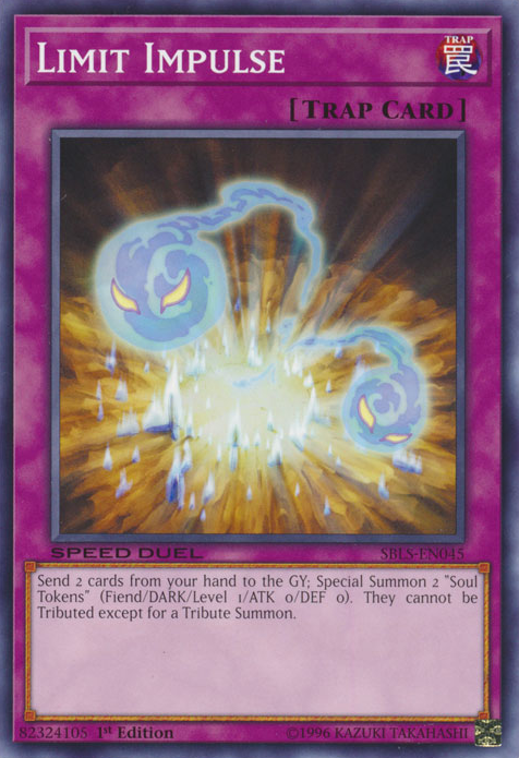 Send 2 cards from your hand to the GY; Special Summon 2 "Soul Tokens" (Fiend/DARK/Level 1/ATK 0/DEF 0). They cannot be Tributed except for a Tribute Summon.