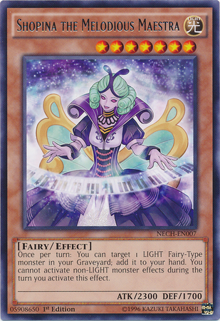 Once per turn: You can target 1 LIGHT Fairy-Type monster in your Graveyard; add it to your hand. You cannot activate non-LIGHT monster effects during the turn you activate this effect.