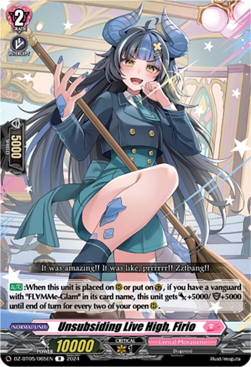 [AUTO]:When this unit is placed on (RC) or put on (GC), if you have a vanguard with "FLMMe-Glam" in its card name, this unit gets [Power] +5000/[Shield] +5000 until end of turn for every two of your open (RC).